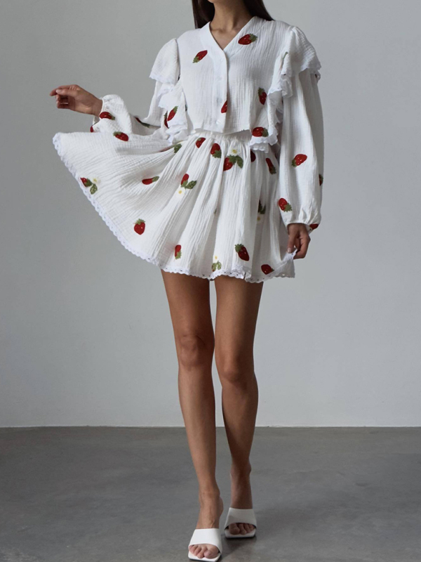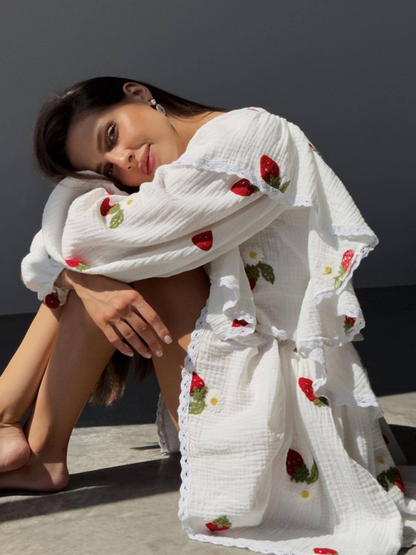 The new women’s ruffled strawberry print skirt suit home wear is suitable for many occasions. The simple design makes the boring season colorful and interesting. A variety of matching options make you confident and beautiful. Please use the sizing guide shown in our images. Please read each element of the sizing guide carefully before choosing a size. The size is measured manually, and there is an error of 1-3cm, which is normal. Key features include. – Comfortable fabric Can be worn casually every day