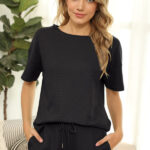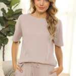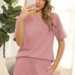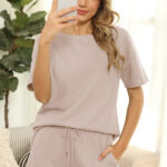 Women’s Short Sleeve Loungewear Solid Color Casual Waffle Two-Piece Suit is suitable for many occasions, the simple design makes the boring season colorful and interesting. A variety of collocation options make you confident and beautiful. It fits snugly without restricting your movement. Key features include. – comfortable fabric casual daily wear